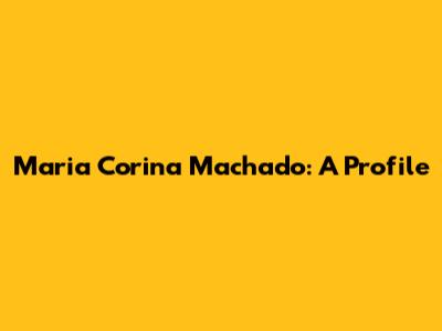 Maria Corina Machado: A Profile