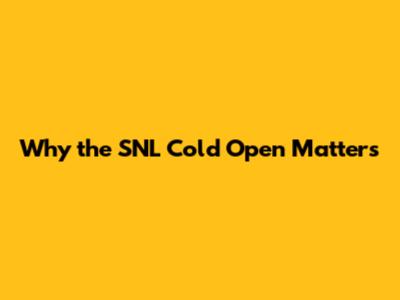 Why the SNL Cold Open Matters